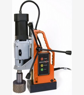 Магнитный сверлильный станок Magtron МВЕ-100 FR Мощный сверлильный станок на магнитным основании линейки МВЕ с реверсом и максимальным диаметром сверления до 130 мм. Отличительной особенностью магнитного сверлильного станка MBE 100 FR является 4-х скоростной редуктор. Контроль усилия подачи и индикатор силы притяжения электромагнита обеспечивает высокую надежность и безопасность применения машины. Станок имеет привод с функцией реверса для нарезания резьбы М5-М30 Технические характеристики- Диапазон сверления кольцевой фрезой: от 12 до 130 мм.